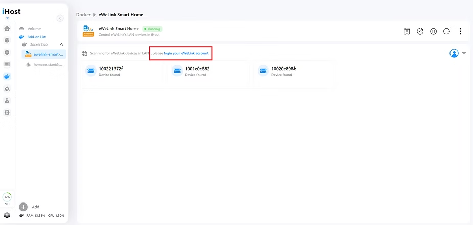 Now, let’s log in with your eWeLink account so that the iHost can access your devices and display them on the main page.