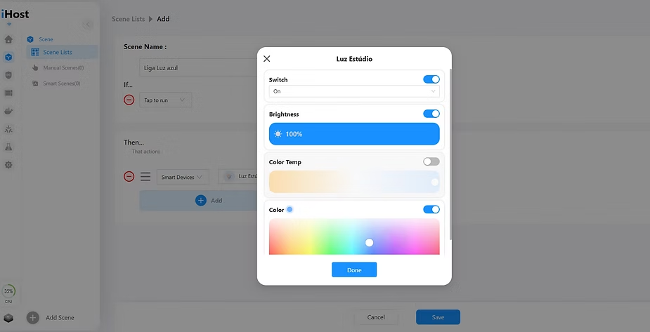 This way, it’s very easy to create automations on the iHost. Automations are key elements to bring more intelligence and autonomy to our home.