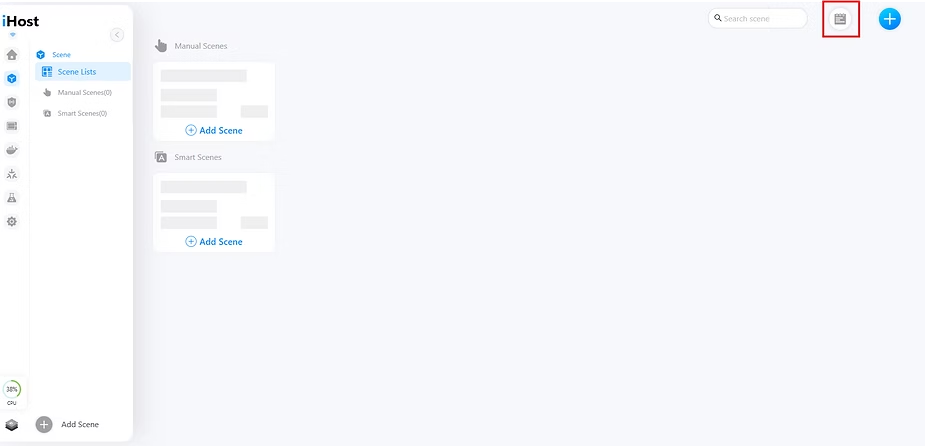Once these steps are completed, the iHost will be ready to use, and the main page, called “Home”, will be displayed—although it will initially be empty.