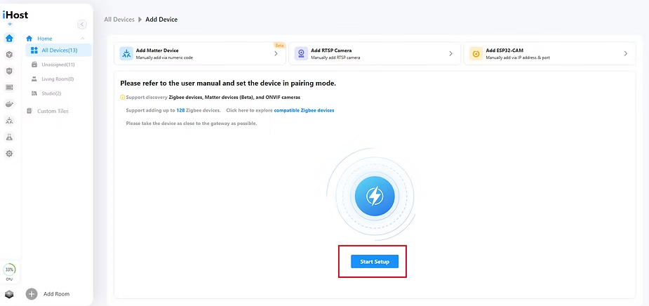 There are two ways to add a Zigbee device to the iHost:
