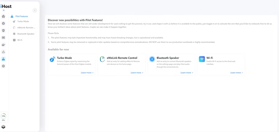 • eWeLink Remote Control: transforms the iHost into an eWeLink Remote Gateway, allowing integration of sub-devices like the S-MATE 2 or R5.