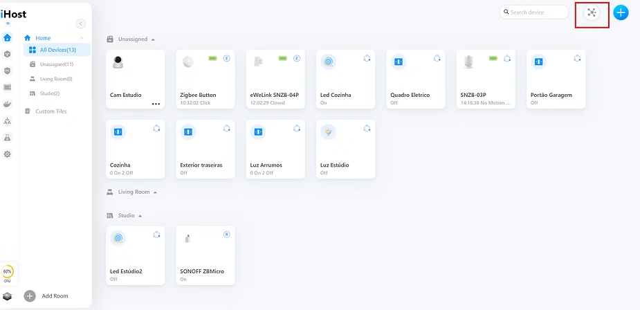 After this, all the devices that the iHost detected on our network will appear on the screen.