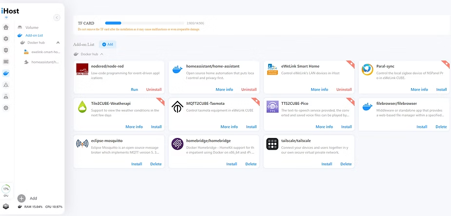 With this feature, it is possible to run add-ons directly on the iHost, such as: