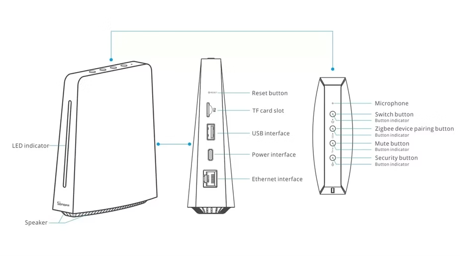 The SONOFF iHost comes equipped with a small speaker that can be used as a siren thanks to the security system functionality.